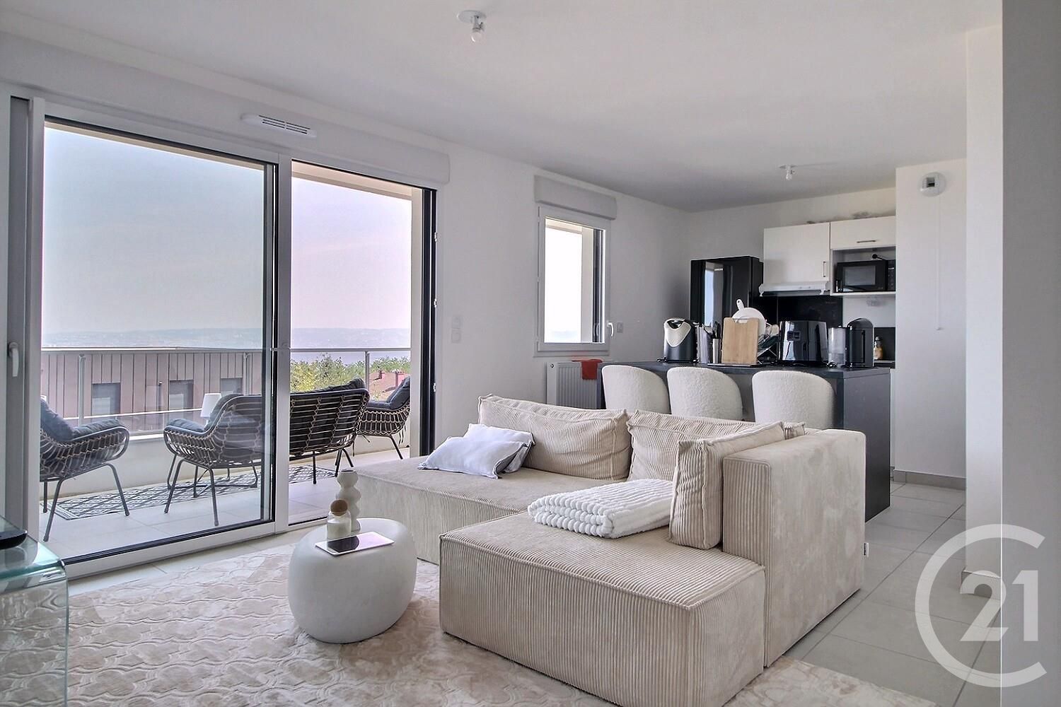Une belle pièce de vie lumineuse, parfaite pour se détendre ou recevoir, ouverte sur un spacieux balcon-terrasse de 11 m² avec une agréable vue sur le lac,